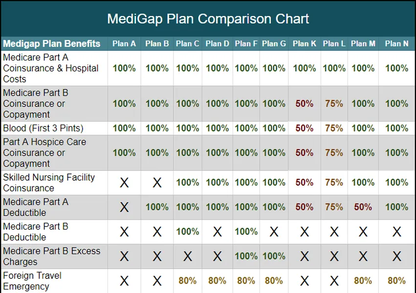 *Certain insurance companies in specific states offer Medigap Plan F and Plan G as high-deductible plans (HDF or HDG). Opting for the high-deductible variant entails covering Medicare-approved costs (coinsurance, copayments, deductibles) up to the annual deductible limit, set at $2,800 for the year 2024, before the policy provides coverage.